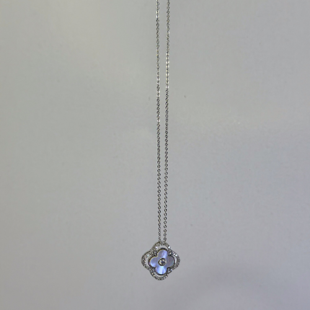 🌸 عقد فضي بتعليقة وردة من اللؤلؤ اللامع