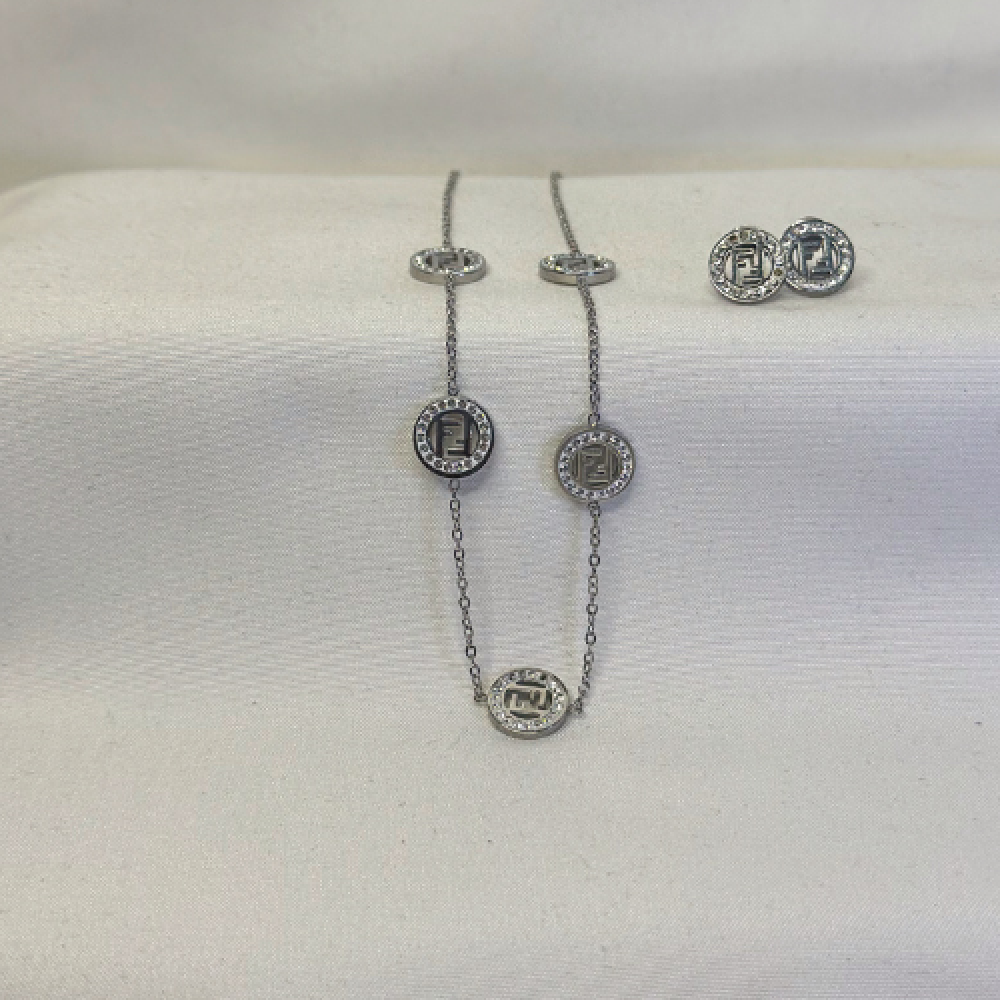 أضيفي لمسة من التميز والرقي إلى إطلالتك مع هذا الطقم الفضي المصمم بدوائر معدنية أنيقة، مزينة بنقشات كلاسيكية بارزة تضيف طابعًا فخمًا وأنيقًا.